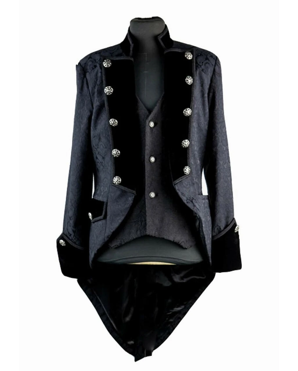 Mit dem schwarzen Brokat Herren Gehrock lbist du auf Gothic- oder Steampunktreffen ein echter Hingucker.