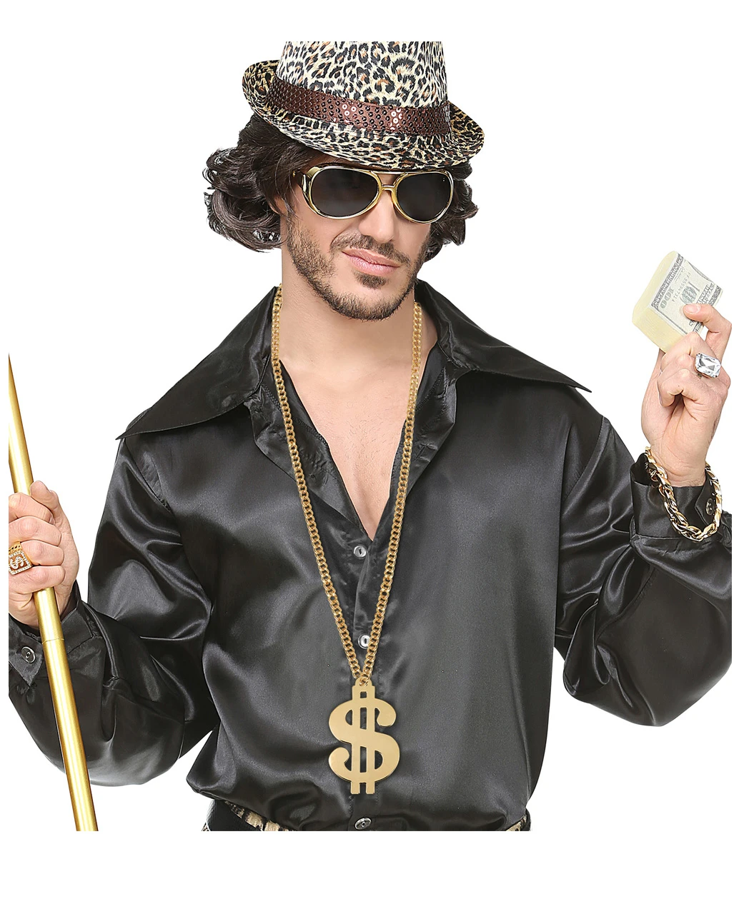 Unsere Goldene Dollarzeichen Halskette ist genau das Richtige für jeden angehenede Gangster Rapper, Zuhälter oder Bordellbesitzer. Die Halsketten mit viel Bling Bling sind das ideale Modeaccessoire für alle die auf dicke Hose machen wollen. Die fette Rapper Kette pimpt dein Bones Latex Maske end krass auf und macht dich zum absoluten First Class Gangster im Money Boy Stil. Die Goldene Dollarzeichen Halskette hat ein ca. 10 cm großes Dollar Zeichen an einer ca 40 cm langen Goldkette hängen.