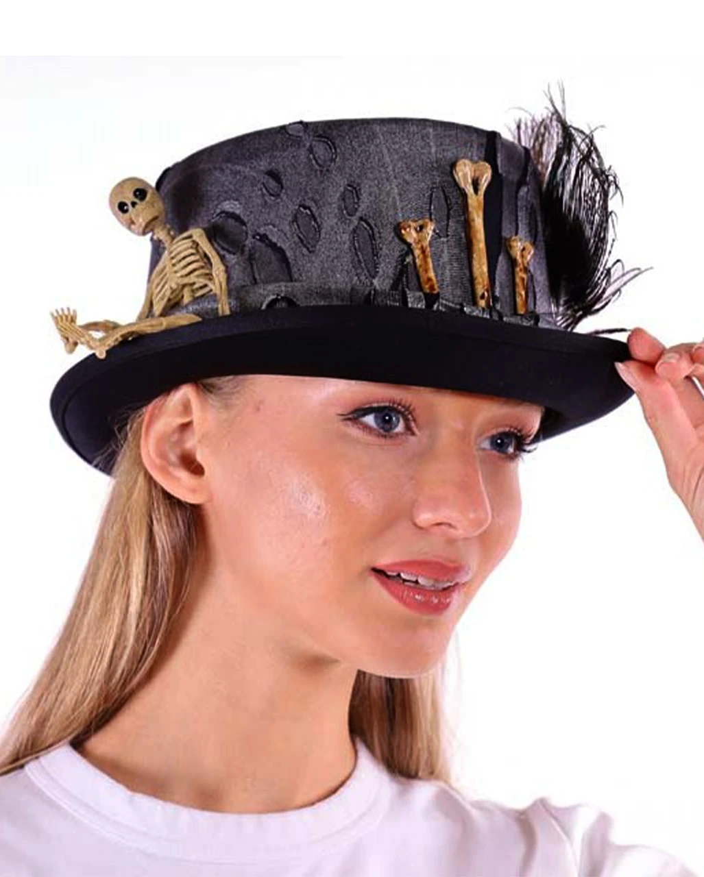 - Ausgefallener Kostümhut mit Knochen Applikation