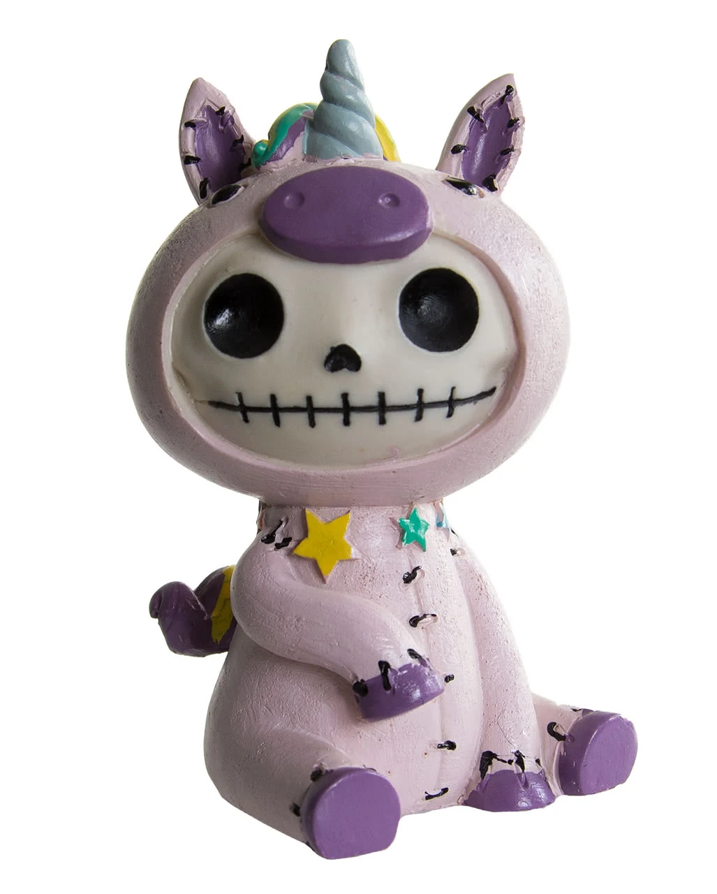 Die große Furrybones Figur – Einhorn ist ca. 10 cm hoch, 5,5 cm breit & 5,5 cm tief & besteht aus Polyresin, einem stabilen Kunststein. Die Unie-Figur ist mit viel Liebe zum Detail verarbeitet & handbemalt. Es sieht aus, als würde eine Skelett ähnliche Figur in das innere des Unicorn geschlüpft sein & grinst frech heraus. Die Furrybones Figuren sind eine geniale Geschenkidee für Gothic & Einhorn Fans.