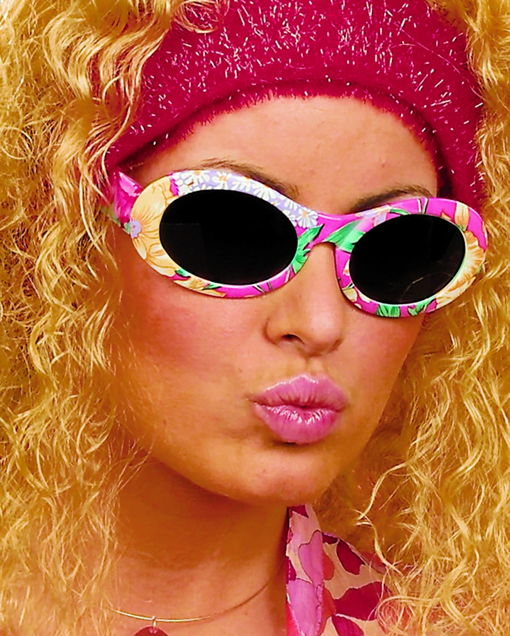 Die geblümte Hippie Sonnenbrille ist ein günstiges Verkleidungszubehör um schnell und ohne großen Aufwand deinen Typ zu verändern. Das Brillengestell der Hippie Sonnenbrille im Retro Design ist mit bunten Blumen bedruckt, hat dunkle Gläser und ist für vielerlei Charaktere geeignet. Rockröhre Janis Joplin, Katja Eppstein und Uschi Obermaier wären wohl auf diese geblümte Hippie Sonnenbrille abgefahren und hätten mit allen anderen Blumenkindern in Woodstock abgerockt.