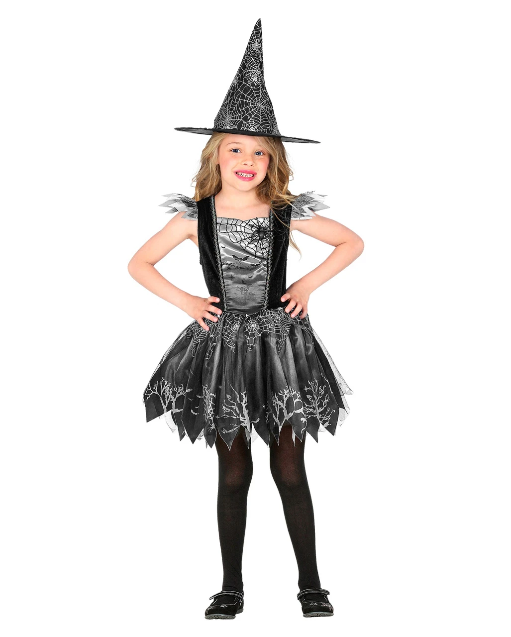 Lieferumfang: 1 x Glänzendes Spinnenhexe Kinderkostüm