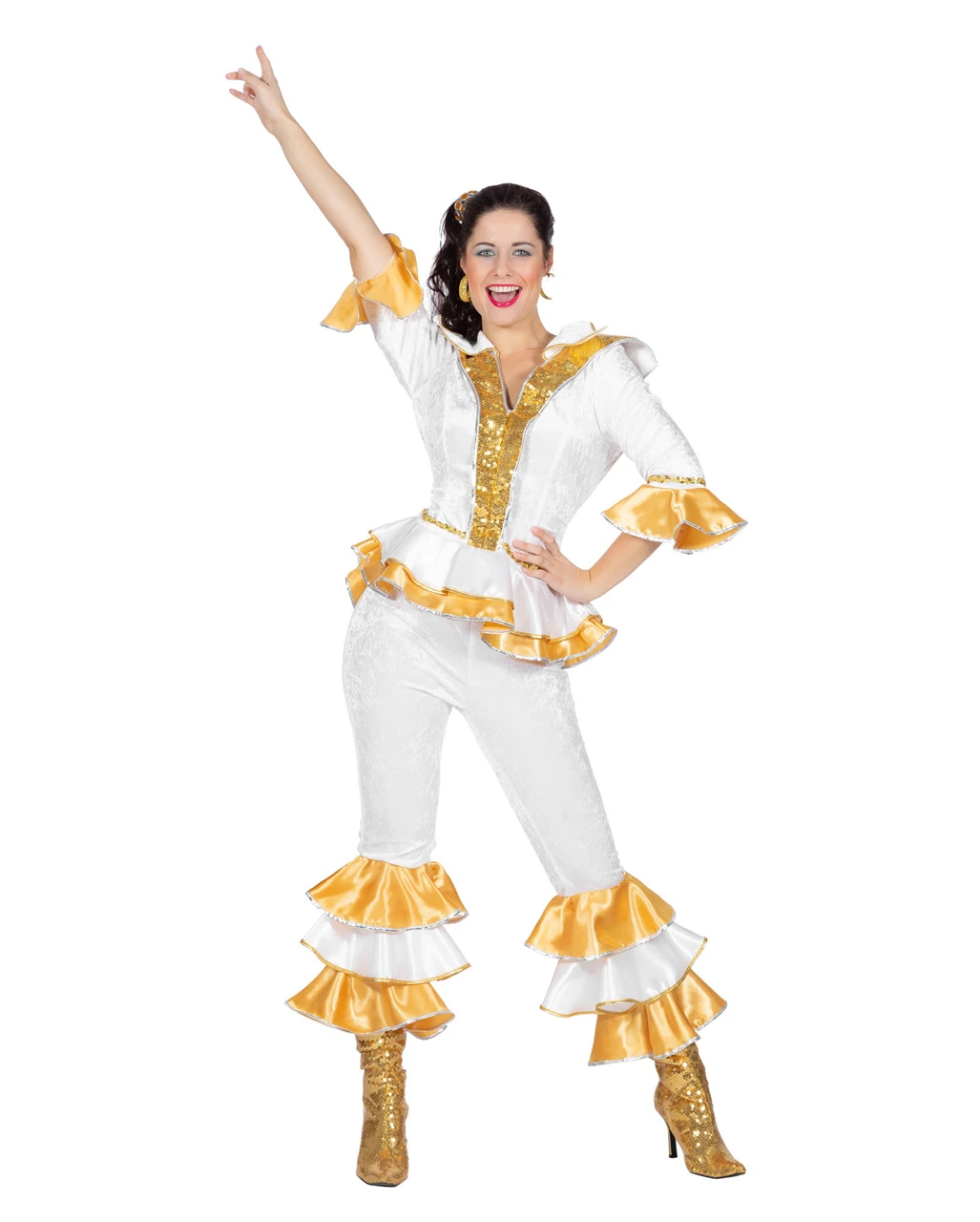 Als geborene Entertainerin lebst du das 70er Jahre Party-Fever auf der Bühne gekonnt aus. Deinem Anblick kann einfach niemand widerstehen, denn als Disco-Queen sorgst du auf jedem Faschingsfest für beste Stimmung! Unser weißes 70s Mama Mia Kostüm Donna ist dafür genau das richtige Outfit. Ausladende Rüschen und schöne Akzente machen dich zum Star unter der Discokugel! Eine große Auswahl an passenden Kostüm-Accessoires, wie Perücken und 70er Party-Deko findest du hier in unserem Onlineshop. Stay groovy!