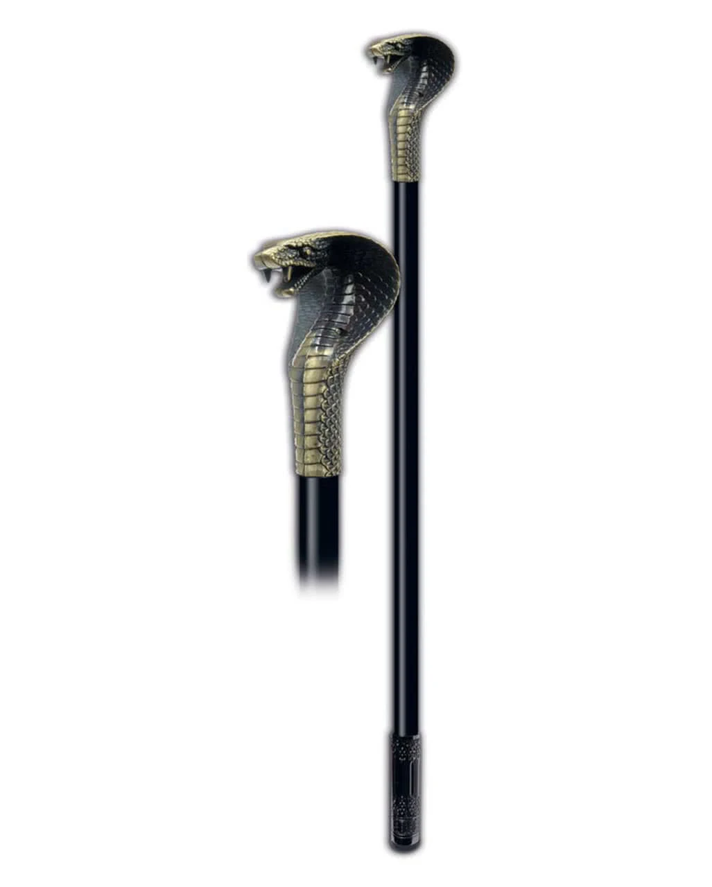 Der Gehstock mit Kobra ist ca. 93 cm lang, besteht aus Metall und hat am Ende einen Überzug aus Gummi. Der messingfarbene Knauf in der Form einer Kobra ist das Highlight des Gehstocks. Ergänze dein Halloween Kostüm mit dem Gehstock mit Kobra & dem Düsterer Graf Vampir Kostüm.