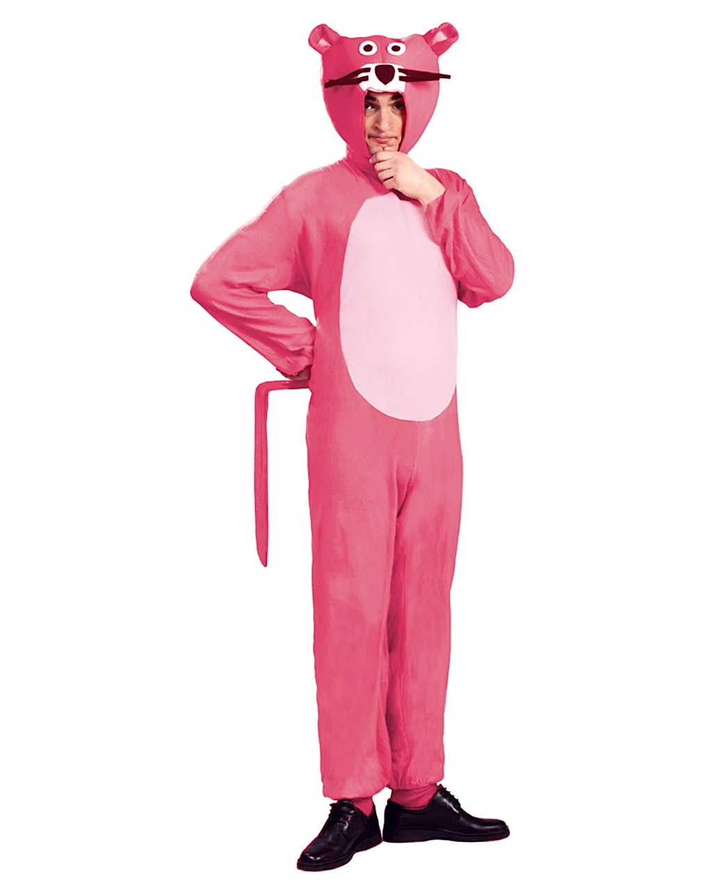 Das Rosa Panter Kostüm ist ein bequemer Jumpsuit aus angenehm weichem Stoff. Ein Panterschwanz ist an der Rückseite befestigt, und die Kapuze mit Gesicht und Öhrchen verleiht dem Kostüm den bekannten Comic Panter-Look. Der lustige Tier Overall ist ein sehr cooles Faschingskostüm, mit dem du viele Bewunderer finden wirst. Es ist in den Größen M, L verfügbar. Entdecke auch das Party Affe Kostüm