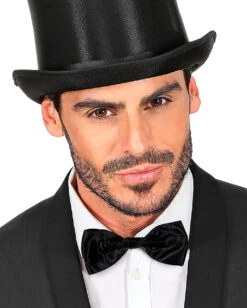 Die schwarze Satinfliege hat eine Größe von 14×6 cm und ist in zwei Schichten gebunden. Dank des verstellbaren Klettverschlusses können die Fliege nicht nur Erwachsene, sondern auch Kinder leicht auf- und abnehmen. Da die Fliege vollkommen schwarz ist, eignet sie sich perfekt als Accessoire für einen schwarzer Herren Frack, und mit einem Gentleman Zylinder ergänzt, kommt unsere Fliege und dein Kostüm perfekt zur Geltung.