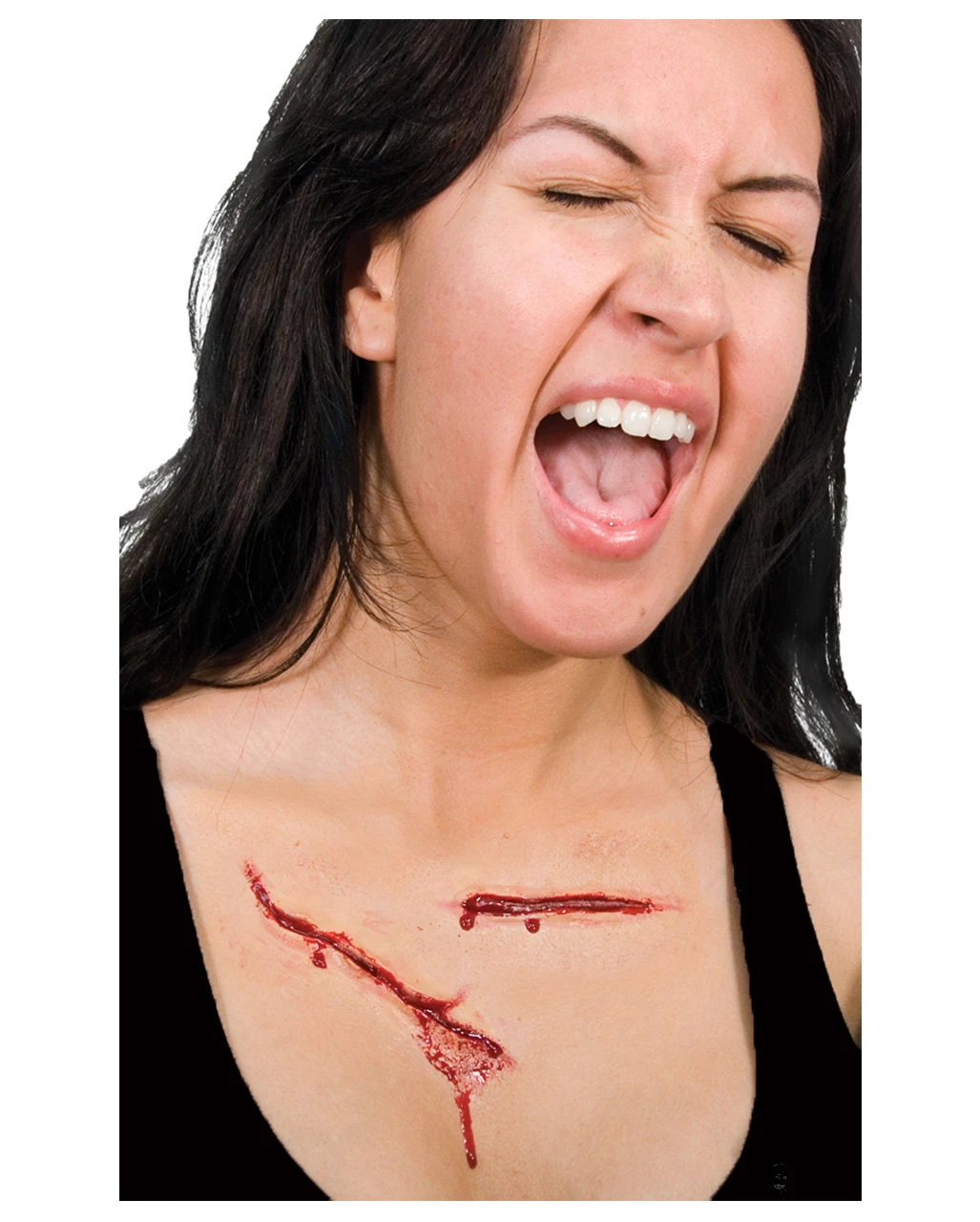Kein Horrorfilm, der ohne fiese Schnittverletzungen auskommt. Ganz gleich, ob durch ein Messer, eine Machete oder eine Axt verursacht, unser Slasher Narben Set ist perfekt dazu geeignet, dein Halloween spezial Make-up zu unterstützen. Die Latexapplikation besteht aus aus zwei großen, gemeingefährlich wirkenden Schnittverletzungen, die man an jede Stelle des Körpers anbringen kann. Mit dem Slasher Narben Set lassen sich derbe Make-up Effekte für Halloween, Zombie Walk und Liverollenspiel schminken.