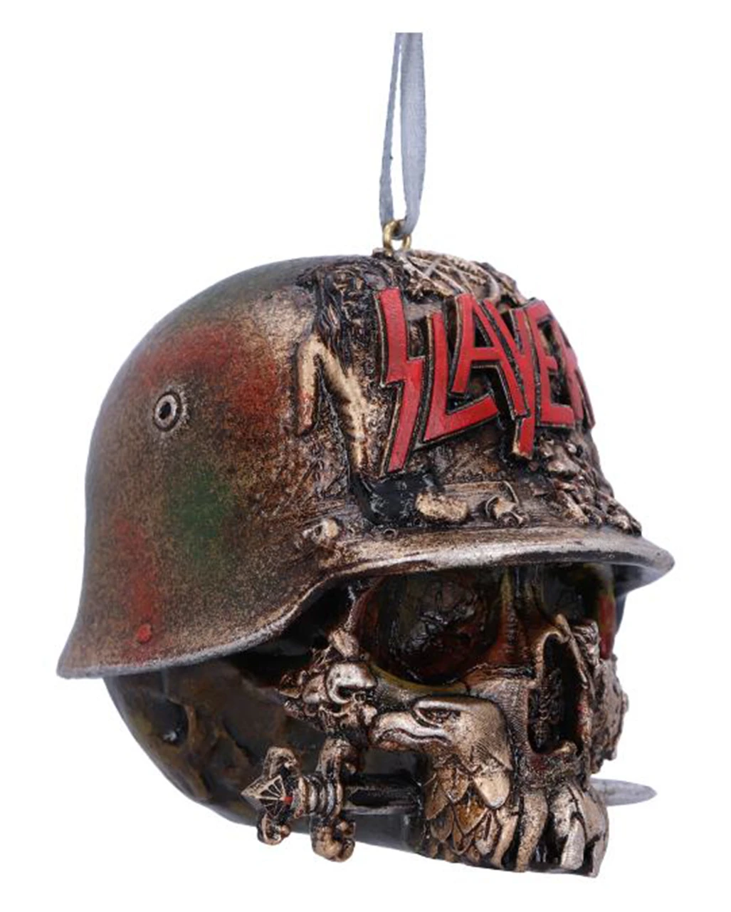Huldige jetzt den Idolen deiner Lieblingsband Slayer und gönn dir dieses einzigartige Totenkopf-Ornament für den Christbaum. Diese krasse Slayer Totenschädel Christbaumkugel sorgt für Festival Feeling unterm Tannenbaum. Unser Totenschädel Ornament zum Aufhängen zeigt den bewaffneten Skull mit Helm und Slayer-Schriftzug. Das beste Geschenk, was du einem Metal Fan machen kannst!